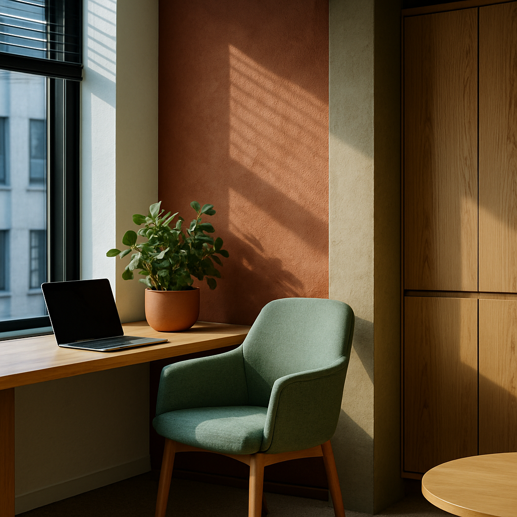 Consider incorporating more biophilic elements into your office. Simple additions like potted plants or a living wall can drastically improve the ambiance and are easy to maintain. These elements not only enhance aesthetics but also improve air quality, contributing to better health and productivity. Why not try adding a few natural elements to your workspace and observe the change in atmosphere?