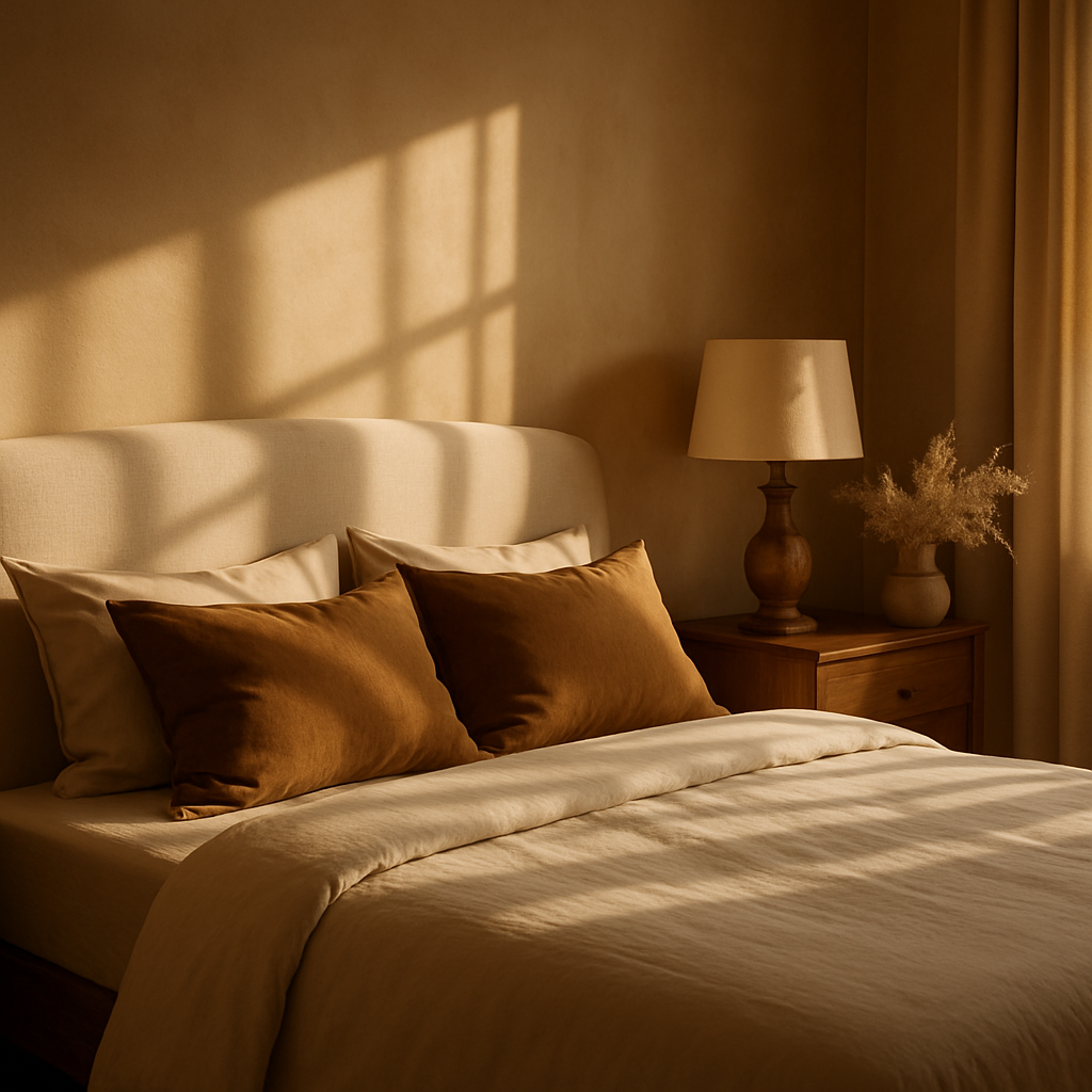 The challenge with warm neutrals is avoiding blandness. A room painted entirely in beige with beige furniture and beige bedding will feel monotonous rather than calming, because the eye has nothing to rest on or move toward. The solution is textural variety: pairing smooth plaster walls with a rough linen headboard, a nubby wool throw with crisp cotton sheets, and matte ceramic accessories with polished wood surfaces. These textural contrasts create visual interest within a restrained palette and prevent the room from feeling flat. NCIDQ-certified designers often describe this approach as creating a "tone-on-tone" composition, where the design interest comes from surface quality rather than color difference.