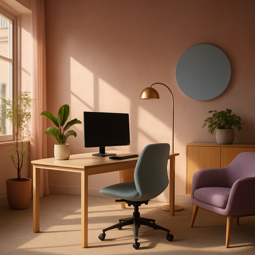 Natural light remains the gold standard for office illumination because it provides full-spectrum illumination that artificial sources only approximate. The IIDA's workplace design research consistently shows that proximity to windows correlates with higher job satisfaction, lower absenteeism, and better sleep quality among office workers, the last benefit attributed to natural light's role in regulating circadian rhythm. Positioning the desk perpendicular to a window, so that daylight enters from the side rather than directly behind or in front of the monitor, eliminates both screen glare and the silhouetting effect that occurs when a bright window sits directly behind the user. For rooms without adequate natural light, tunable LED panels that shift color temperature from cool daylight (5000K) in the morning to warm incandescent (2700K) in the afternoon simulate the natural light cycle and support the body's circadian timing. These panels, available as ceiling-mounted fixtures or desk lamps, range from $100 to $400 and deliver measurable improvements in alertness and evening sleep onset.