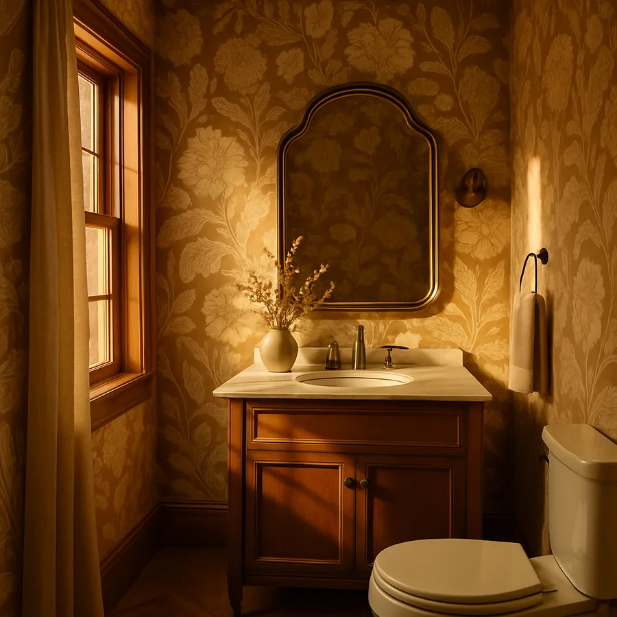 The powder room is the rare room where restraint is the wrong instinct. Because the space is small, the viewing time is short, and the moisture exposure is low, it can carry more visual weight per square foot than any other room in the house. A well-chosen bold wallpaper turns a forgettable half bath into the room guests talk about for weeks, and it does so at a cost that is often lower than repainting a living room. The craft is in the match between pattern scale, color strategy, and the quiet supporting cast of vanity, mirror, and light.