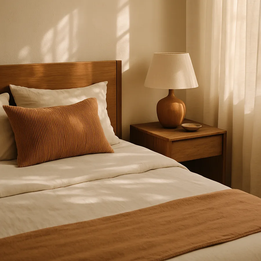 Does your bedroom have enough space for two full nightstands? If not, creative alternatives maintain the symmetry principle without consuming excess floor area. Wall-mounted floating shelves on each side of the bed provide surface space with zero floor footprint. Small stools or narrow plant stands can serve as minimalist nightstands in tight quarters. The key is visual balance rather than identical furniture. Two different pieces of similar size and height satisfy the feng shui requirement while allowing personal expression on each side.