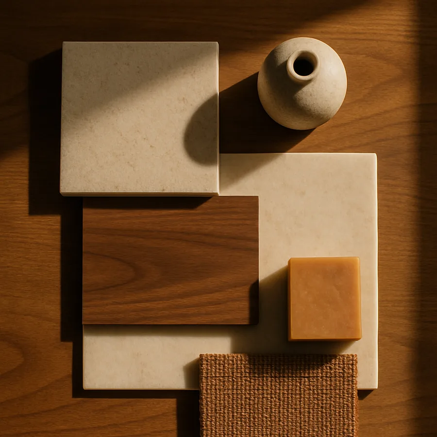 Regardless of species, the finish is paramount. High-gloss lacquers and thick polyurethane coatings have no place in Japandi design, as they obscure the very texture and character that justify using real wood. Hardwax oils, such as those produced by Rubio Monocoat and Osmo, are the preferred finish among Japandi-focused designers. These penetrating finishes protect the wood from moisture while allowing the grain to remain visible and the surface to retain its natural tactile quality. The wood should feel like wood when you touch it, not like plastic. According to a survey by Houzz, natural oil finishes have become the most requested wood treatment in bathroom renovations oriented toward organic and minimalist styles.