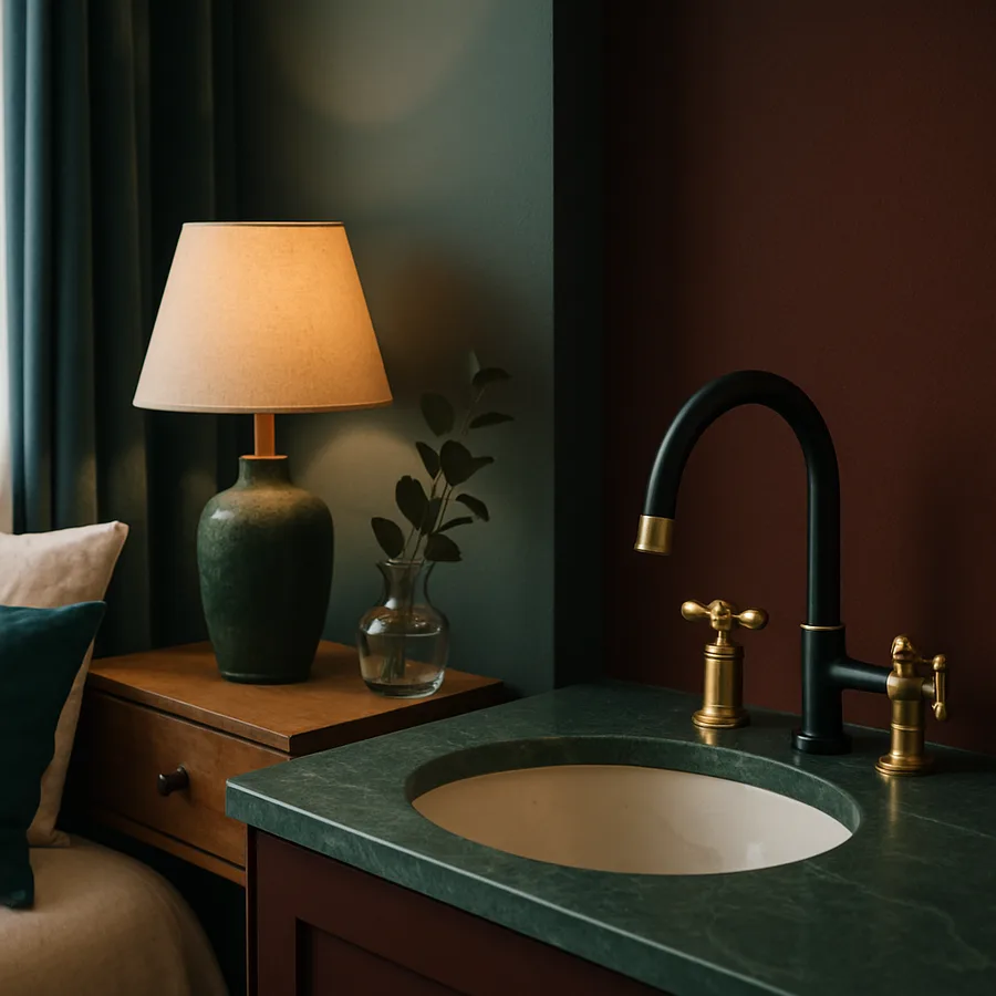 Problems arise when two finishes are used in roughly equal proportions without a clear hierarchy. A bathroom with polished chrome on the faucet, brushed gold on the towel bar, polished chrome on the showerhead, and brushed gold on the cabinet pulls creates a visual ping-pong effect where the eye bounces between the two finishes without settling on either as the anchor. The result feels indecisive. Committing to one finish as dominant and disciplining the accent finish to secondary surfaces resolves this tension immediately.
