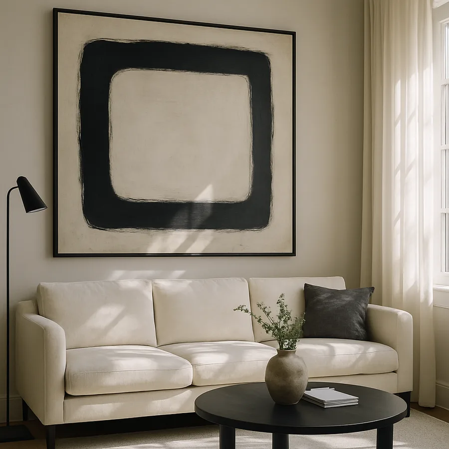 Oversized art, generally defined as any piece wider than 40 inches or taller than 30 inches, carries a presence that smaller works and grouped arrangements cannot replicate. A single large canvas or framed print fills the eye's field of view from the seating position, creating an immersive visual experience that draws occupants into the artwork. This scale of art also simplifies the design decision: instead of curating a gallery wall with multiple pieces that must work together in size, color, and spacing, a single oversized work makes one bold statement. The American Society of Interior Designers (ASID) reports that oversized statement art consistently ranks among the top five most-requested living room design elements in residential projects.