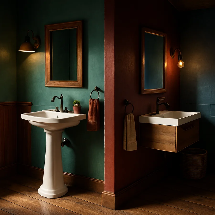When does each win? Pedestal sinks win in very small rooms under 20 square feet, in traditional or period homes, in households that do not need half-bath storage, and when the plumbing comes up through the floor and cannot be cost-effectively re-routed. Wall-mount vanities win in rooms 25 square feet and up, in modern or contemporary homes, in households that need meaningful half-bath storage, and in new construction where plumbing can be planned wall-ward from day one. A reader's question worth ending on: if a friend walked into your finished half bath and described it in one word, would you want that word to be "classic" or "modern"? The honest answer should decide the fixture.