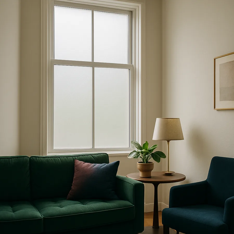 Frosted film is available in full-coverage and partial-coverage configurations that serve different privacy needs. Full-coverage frosted film, applied to the entire glass surface, provides maximum privacy but eliminates any view through the window, which can feel isolating in rooms where a connection to the outdoors matters. Partial-coverage applications, such as a frosted band covering the lower two-thirds of the window while leaving the upper third clear, allow light and sky views through the top while blocking sightlines at eye level where privacy is most needed. This banded approach is especially popular for bathroom windows, front doors with sidelights, and ground-floor living spaces where the lower portion of the glass faces pedestrian traffic and the upper portion faces only sky and treetops.